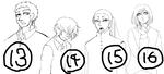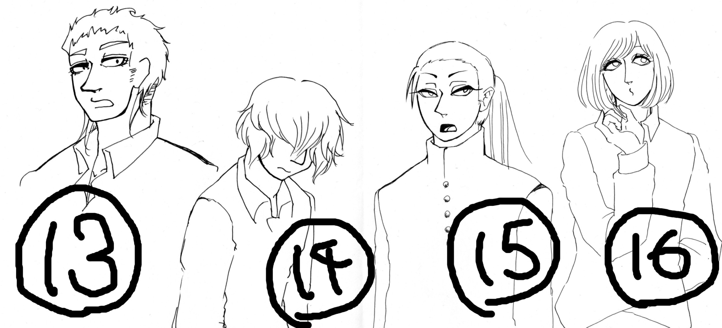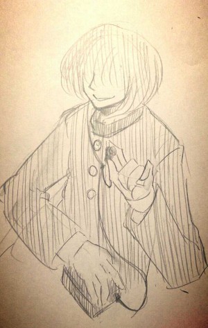 14,有幻/ユウゲン 三年 陰気猫背目隠れくん。基本的に無口で一人。ご飯を食べるのが好きじゃない。何故か龍二によく話しかけられるが悪い気はしていない